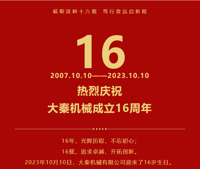 熱烈慶祝丨漢中大秦機(jī)械有限公司成立16周年